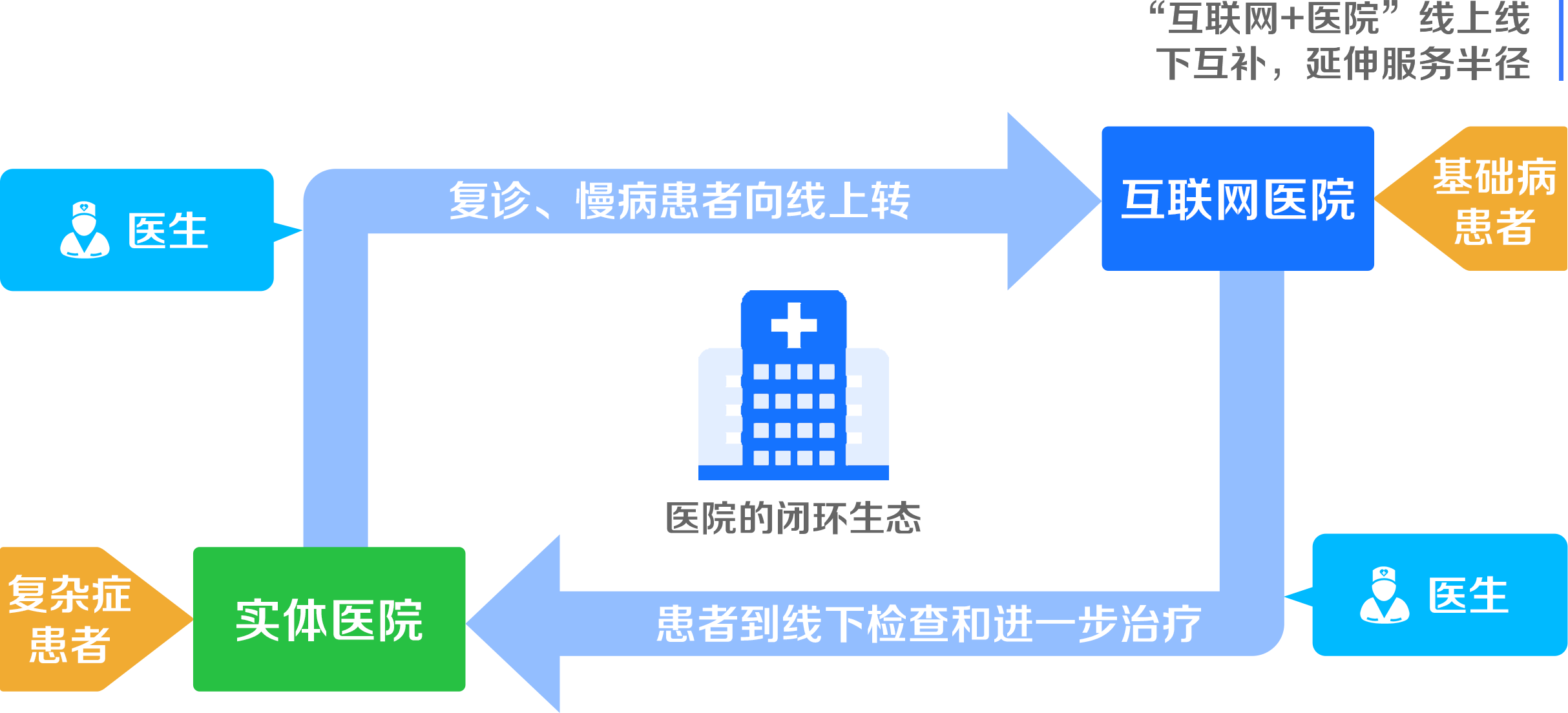 互联网医院:以微信公众号、支付宝生活号及官方 APP 作为载体,实现在线挂号、在线缴费、远程诊疗、在线咨询等功能,并带有随访、慢病管理、健康宣教等医疗服务,能针对老高糖、妇女儿童等特定人群做针对性医疗服务。同时结合物联网应用,实现药品、病历等邮寄服务。
