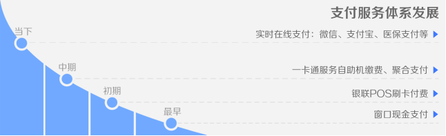 统一支付平台:多种支付方式,优化支付体验。随着互联网医疗的发展,银行聚合支付、微信、支付宝、云闪付等应用的快速发展对医疗健康机构的支付方式提出了新的挑战,更多地用户开始倾向于手机支付。当下,针对于这一变化,医疗机构与第三方支付机构密切开展合作,在传统支付的基础上丰富支付方式,优化用户支付体验。