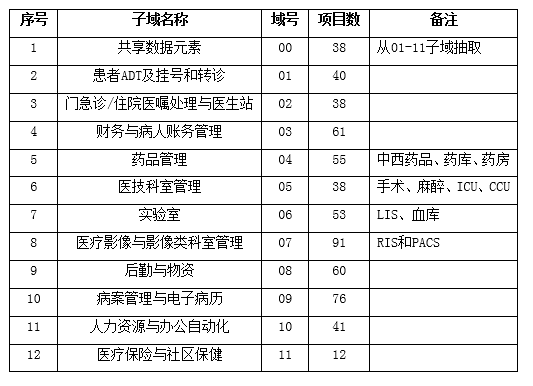 表1 中国医院信息基本数据集(BDSS,1.0)子域划分目录
